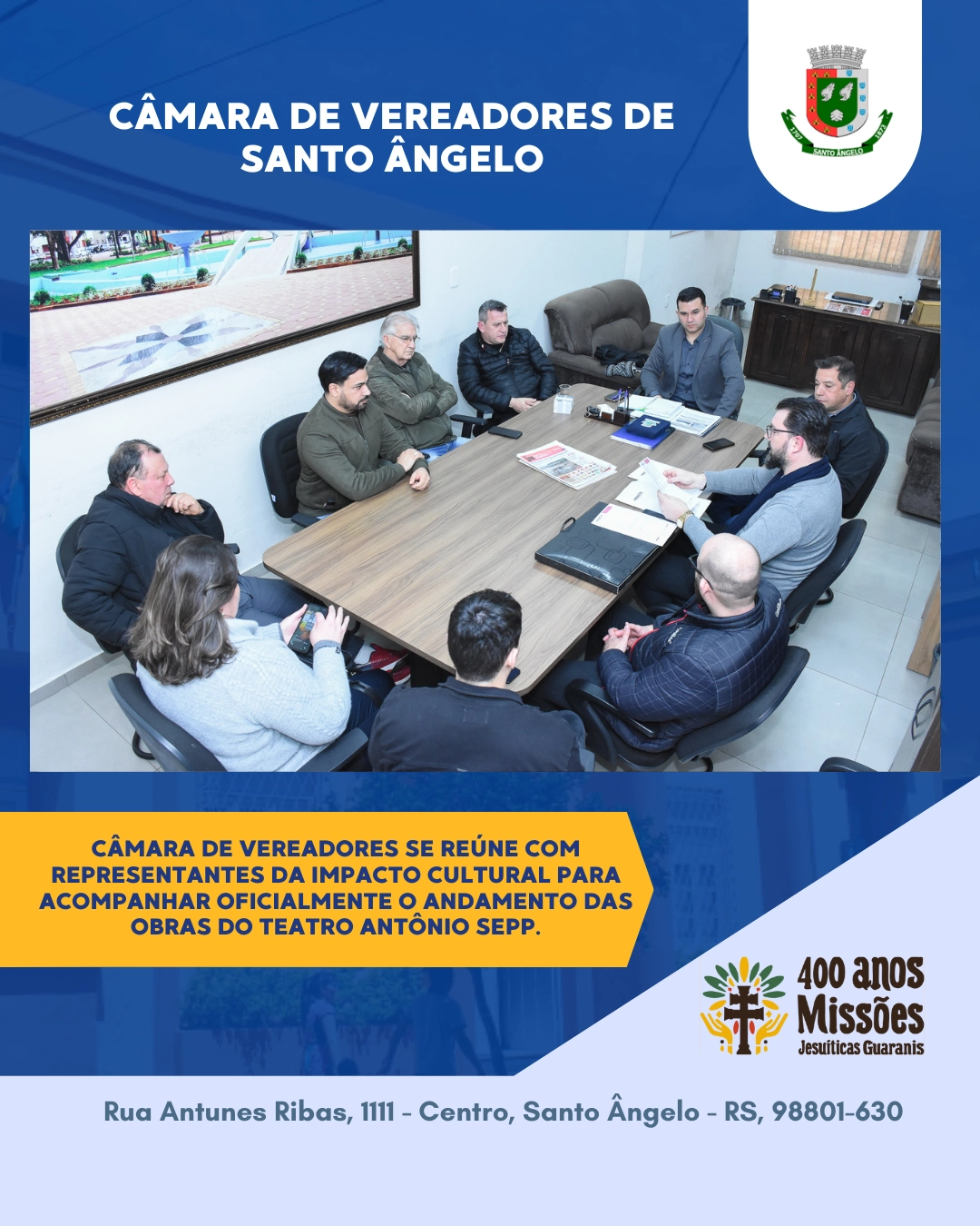 Câmara acompanha obras do Teatro Antônio Sepp e reforça apoio à cultu...