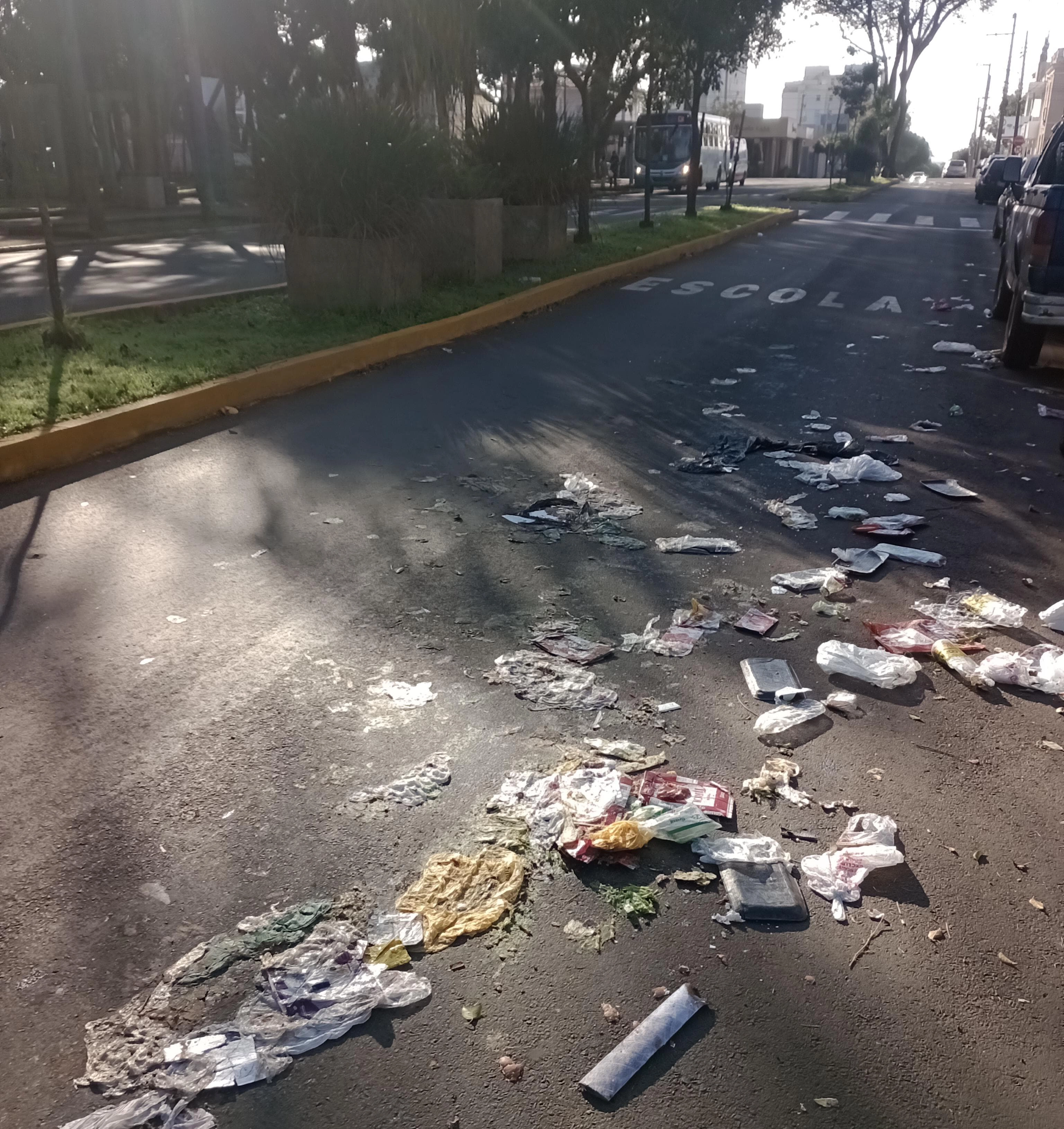 Coluna Por Aí: Lixo espalhado na rua em frente ao Centro Histórico